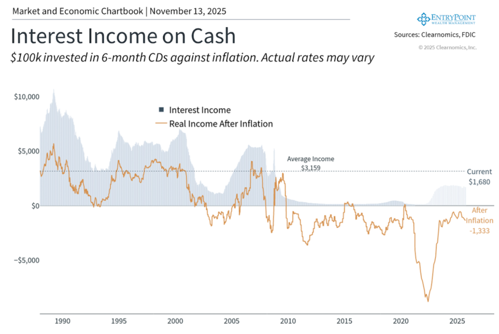 With the Fed cutting rates, the era of 4–5% money-market yields is ending. Cash will soon earn less than inflation, guaranteeing a slow bleed in purchasing power.