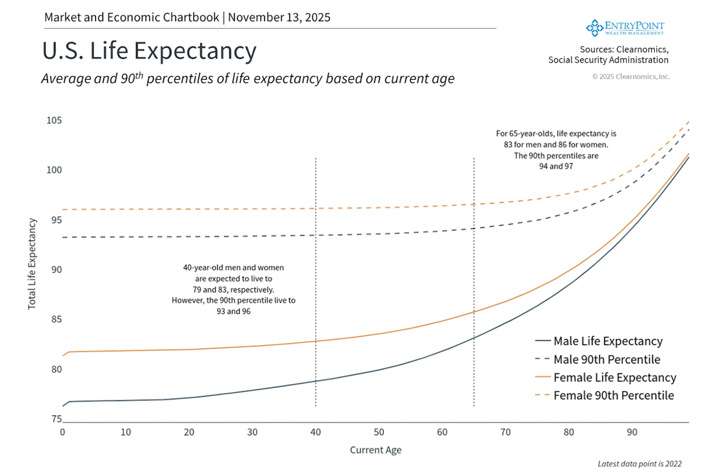 We’re living longer—and that’s a gift with a price tag. A 65-year-old today has a 50/50 shot at reaching 83 (men) or 86 (women). The top 10%? 94 or 97.